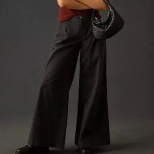 Anthropologie Mid-Rise Pleated Trousers Wide Leg Pants Black Size 0 26600
