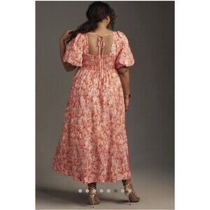 Anthropologie Midi Dress Women Babydoll Orange Floral Puff Sleeve Smock LG NWT Length approximately 51 inches Armpit to armpit approximately 19 inches.