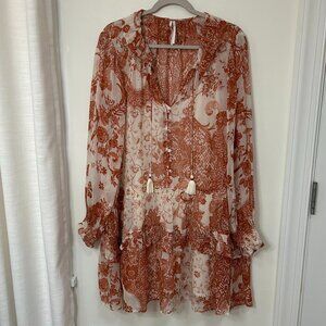 Anthropologie Midi Dress in Cream & Terracotta Color Size L