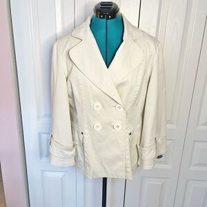 Anthropologie Millard Fillmore Vintage Y2K Button Lined Cotton Spandex Pocket Stretch Peacoat Jacket