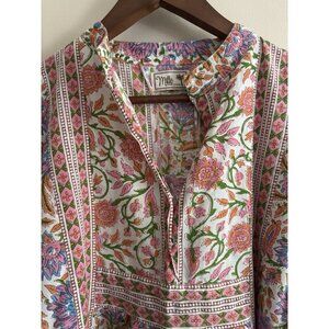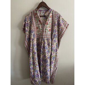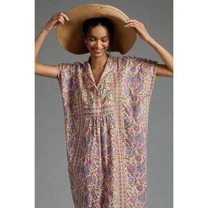 Anthropologie Mille Kaftan Pink Floral Hippie Retro Boho Beach Large