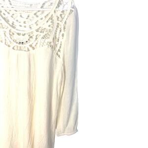 Anthropologie Mine Mini Minimalist Dress M Ivory Chiffon Crochet Lace Coastal
