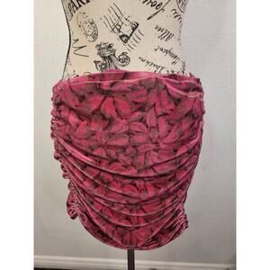 Anthropologie Mini Skirt Size Medium Ruched Velvet Floral Pink Pull On