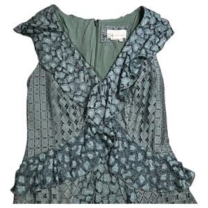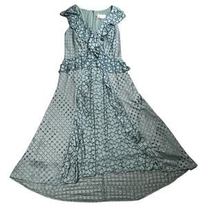 Anthropologie Mint Green Antoinette Ruffled Lace Midi Hi Lo Peplum Dress size 8