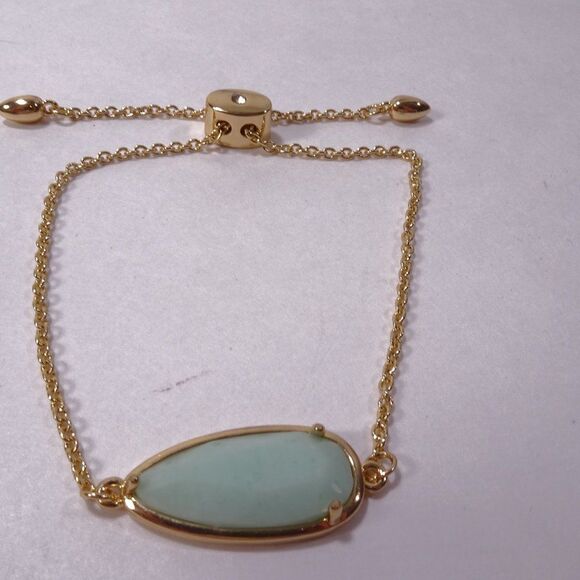 Anthropologie Mint Stone Resin Oval Gold Snake Chain Slider Bracelet NWOT $58.00