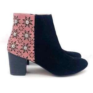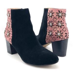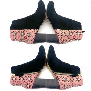 Anthropologie Miss Albright Kaida Beaded Ankle Bootie Black Pink Suede Size 8