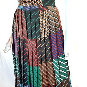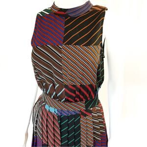 Anthropologie Mo:Vint Striped Pleated Midi Mockneck Sleeveless Dress XS