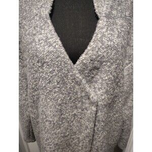 The Anthropologie Mo:Vint Wool Blend Double Breast Jacket is a versatile and stylish piece for women in size Medium. Made from a luxurious wool blend in a solid gray color, this long jacket features a snap closure and is perfect for various occasions including travel, casual outings, formal events, workwear, and business meetings. Lined with polyester, this basic jacket from Anthropologie is a fashionable and practical addition to any wardrobe, offering both comfort and style.