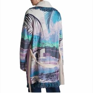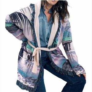 This cozy, vibrant layer features fringed embellishments for a playfully feminine touch.