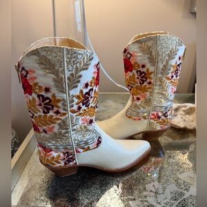 Anthropologie Momo New York embroidered silk western boots aniles size 39/ 9 new without box or tags. Current on the website.