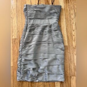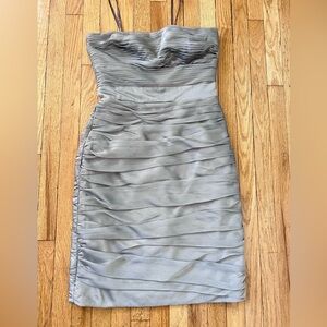 Anthropologie Monique Lhuillier Silver Strapless Bridesmaid/ Formal Mini Dress