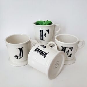 Anthropologie Monogram Initial Letter Mug Coffee Tea Cup Black White E & F
