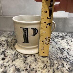 Anthropologie Monogram Initial “P” Coffee Mug Black White 12 Ounces