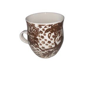 Anthropologie Monogram W/blue “R” Mug w/ Brown Flower Background Cup Coffee Tea