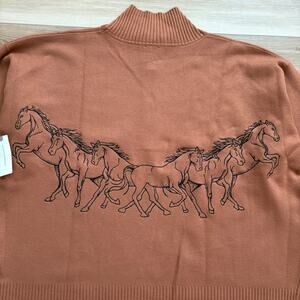 Anthropologie Montana Horses Mock-Neck Half-Zip Sweater Bronze M