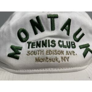 The Anthropologie Montauk Tennis Club Baseball Hat is a stylish and trendy accessory for women, inspired by the Coney Island Picnic brand. The hat features a classic white color with a sporty design, perfect for a day at the beach or a casual outing. The one-size-fits-all design ensures a comfortable and adjustable fit for any woman looking to add a chic touch to their outfit.