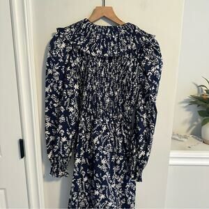 Anthropologie Moon River Navy Blue Smocked Cotton Floral Maxi Dress Small
