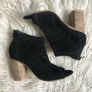 Floral cutouts and a peeped toe help transition this traditional winter design into a shoe that suits the warm days ahead.
