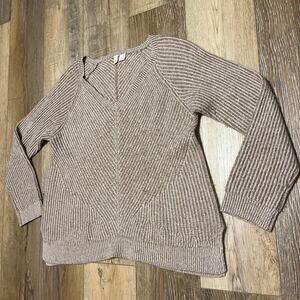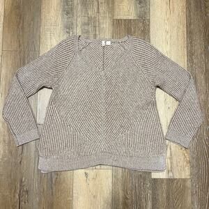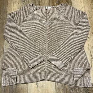 Anthropologie Moth 100% Cashmere Sweater V-Neck Beige Soft Knit XL Side Slits