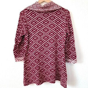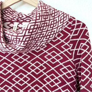 Anthropologie Moth Alpaca Cowl Turtleneck Sweater Maroon Geometric Print