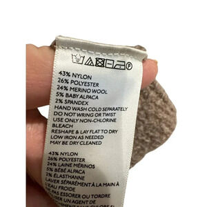 Made of 43% Nylon, 26% Polyester, 24% Merino Wool, 5% Baby Alpaca and 2% Spandex.