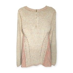 Stay cozy and stylish with this Anthropologie Moth Anita Swing Sweater Top. This versatile sweater features a beautiful cable knit pattern in a lovely pink rose color. It has long sleeves, a crew neckline, and an oversized fit that adds comfort and style to your wardrobe.