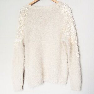 Anthropologie Moth Audrette Eyelash Sweater Pullover 3D Floral Applique Cream L