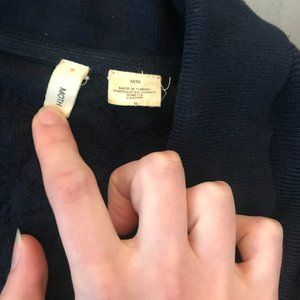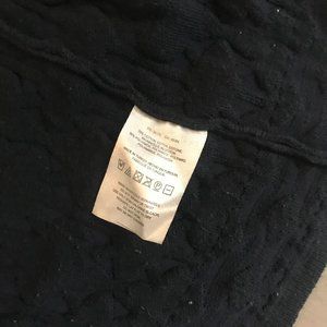 No signs of wear, perfect for fall as a jacket or through layered with other pieces through the winter. Open front, overall geometric pattern in blue - purple. I'm the original owner, I just don't wear this piece very much. Very librarian chic with tall boots, a skirt and oversized glasses.