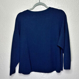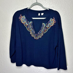 Anthropologie Moth Beaded Split-Neck Pullover Sweater Top Navy Blue Medium