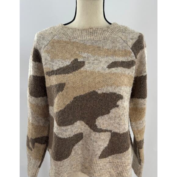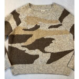 Anthropologie Moth Beige Brown Camo Knit Crewneck Sweater M