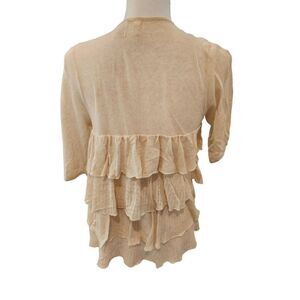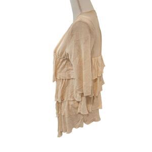 Anthropologie Moth Beige Linen Blend Elbow Length Open Waterfall Front Cardigan