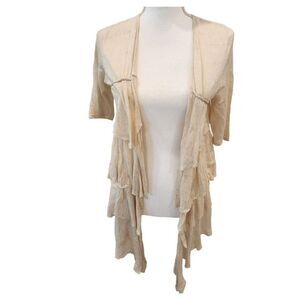 Anthropologie Moth Womens Beige Linen Blend Elbow Length Open Waterfall Front Cardigan Sweater S