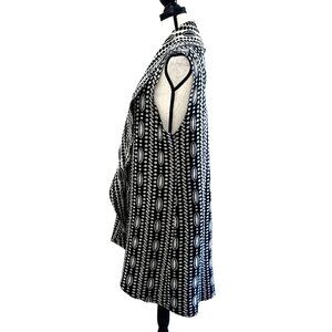 This sleeveless cardigan from Anthropologie offers a striking black and cream pattern and a versatile addition to any wardrobe. Made from a soft wool blend, it provides warmth and style, making it suitable for both casual and formal settings. The open front design adds elegance and flexibility.