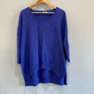 Anthropologie Moth Blue High Low Slit Sides 3/4 Sleeve Sweater Size Medium
