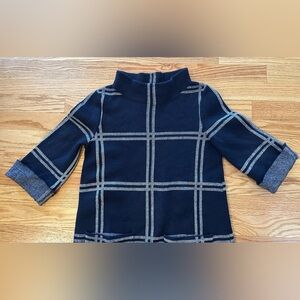 Anthropologie Moth Blue Window Paned Wool Blend Mock Neck Tunic Sweater - Size S
