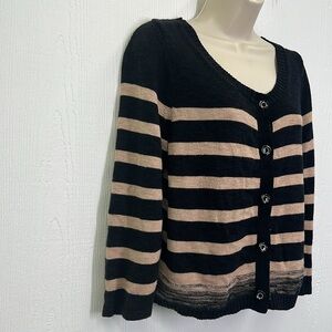 Anthropologie- Moth Buttoned Down Black And Tan Stripe Knit Cardigan Size Medium