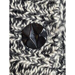 Cozy and stylish, this marled gray sweater vest features a cable knit design with a sleeveless cowl neck and tunic length. Oversized buttons and pockets add functional flair, while the wool blend offers warmth and comfort.
