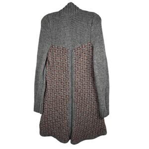 Anthropologie Moth Cardigan Large Long Open Front Gray Rust Wool Blend Knit Coat