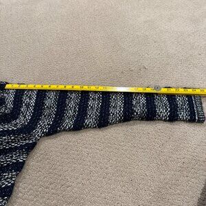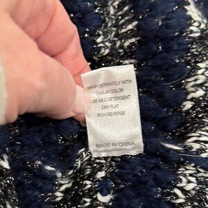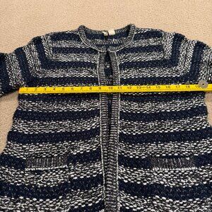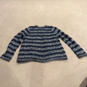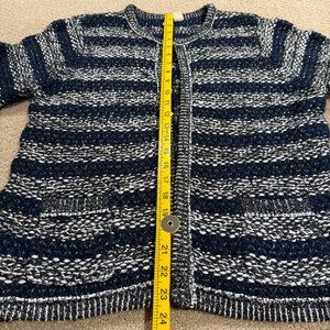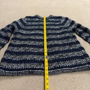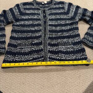 Anthropologie Moth Mademoiselle Navy Metallic Striped Cardigan Sweater Jacket Boucle LARGE Chunky Knit Boho Classic Career