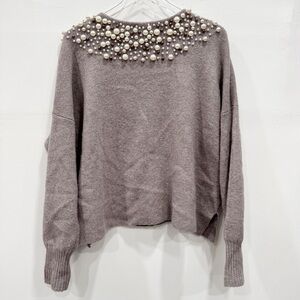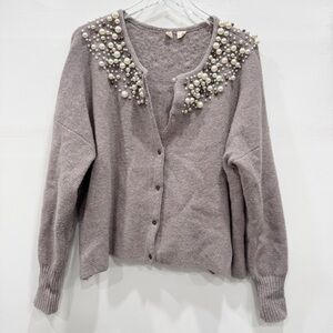 Anthropologie Moth Cardigan Sweater Pearl Neck Taupe Grey Alpaca Wool Large