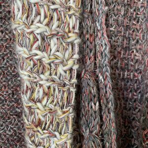 Gray Tan Red Shimmer Knit, Mixed Pattern