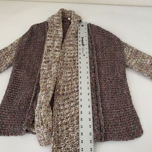Anthropologie Moth Cardigan Sweater S Gray Tan Red Shimmer Knit Open Front Boho
