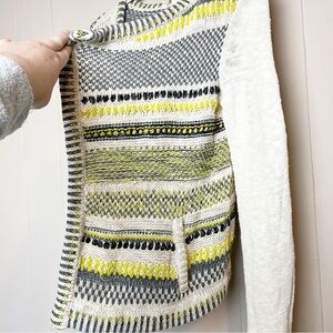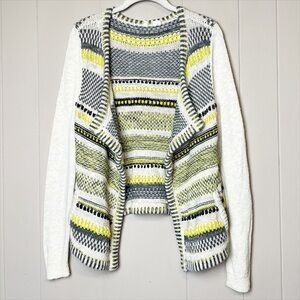 Anthropologie Moth Chaux Cardigan Sweater small stripes pockets open neon lime chunky boho indie artsy art to wear twee