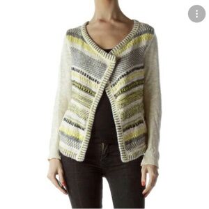 Anthropologie Moth Chaux Stripe Shimmer Open Cardigan Sweater Small