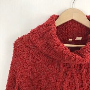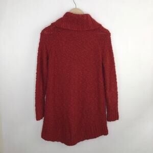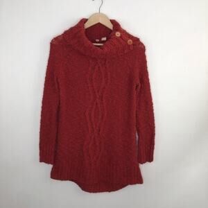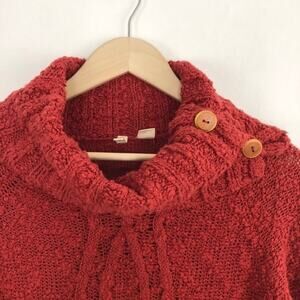 In great previously owned condition. Cowl neck with wooden buttons on the neck. Great burnt orange color. Super comfortable and cozy. A bit oversized so please see measurements.