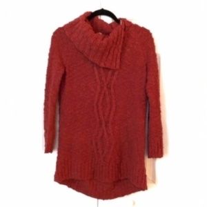 Anthropologie Moth cozy burnt orange sweater. Pullover style with cowl neck exaggerated collar and button detailing. Comes with an extra button.