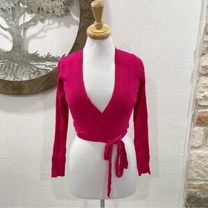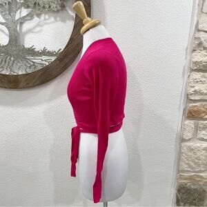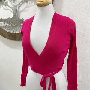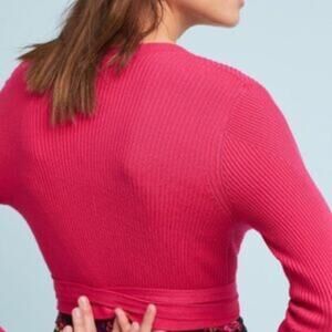 Anthropologie Moth Cropped Ballet Wrap Top Ribbed Sweater Fuschia Pink Small