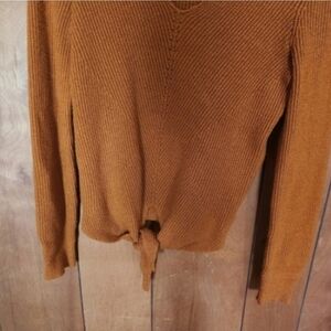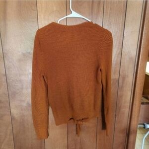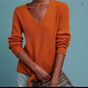 Anthropologie Moth Freeport Ribbed Knit V-Neck Tie Sweater Rust Orange XS