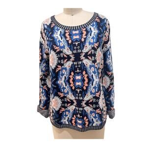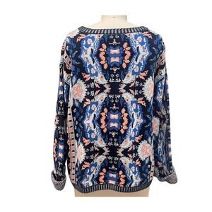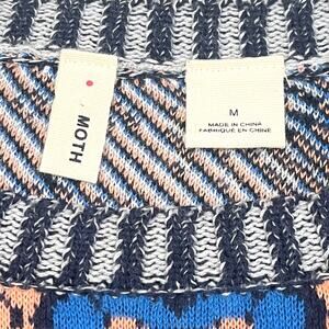 Anthropologie Moth Geometric Cabine Blue & Peach Kaleidoscope Sweater Size M