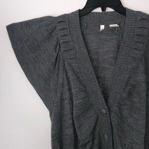 Anthropologie Moth Gray Wool Flutter Sleeve Button Up Long Cardigan size S